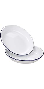 The Webake 9.5 Inch Enamel Plates are a set of two durable, food-grade enameled steel bowls designed for versatile use, from pasta to salads. With a non-stick, BPA-free ceramic coating, these bowls ensure easy food release and cleanup. Their shallow design is perfect for both human and pet dining, while being stackable for efficient storage.