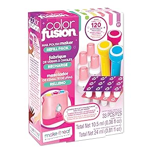 Make It Real Color Fusion Nail Polish Maker Refill Pack - Compatible with Color Fusion Nail Polish Maker - Supplies for 120 Manicures Includes 3 Color Tubes, 24 Polish Capsules, 4 Nail Polish Bottles