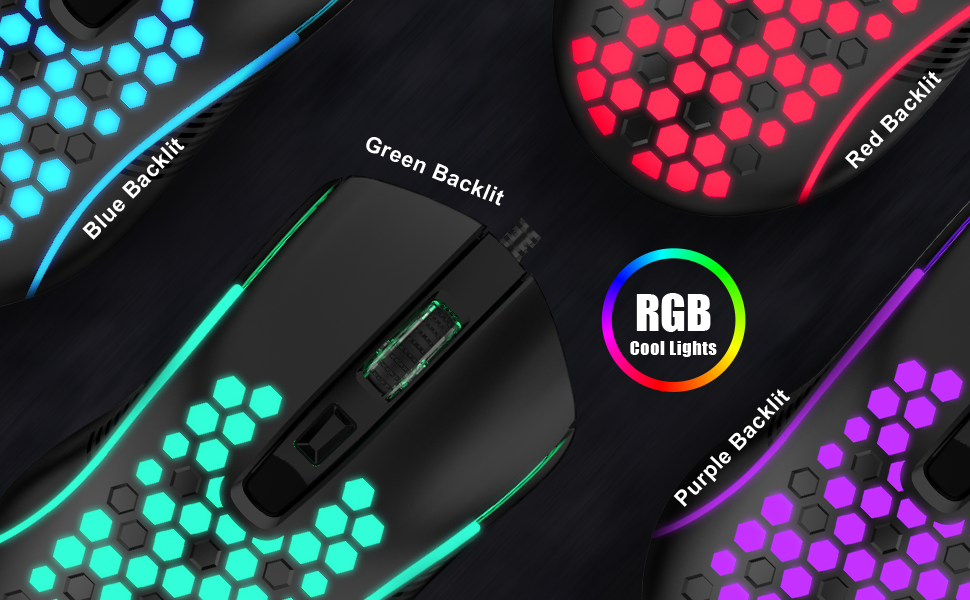 Gaming Mouse Wired, Ultra-Lightweight Honeycomb Computer Mice with RGB Backlit, 3600 Adjustable DPI USB Computer Mouse for Windows PC & Laptop Gamers