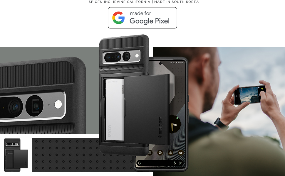 The Spigen Slim Armor CS for Pixel 7 Pro (2022) combines dual-layer protection with a sleek design, featuring an exterior card slot for convenience and shock-absorbing materials for ultimate safety.