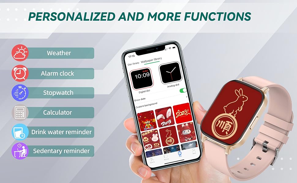 The watch does everything I want in a smart watch and some more. Its easy to use, set up and has a large number.ber of watch themes to choose from. I had a branded watch that cost hundreds and did no where near as much as this watch, for £26.99 it is a great buy, highly recommended.