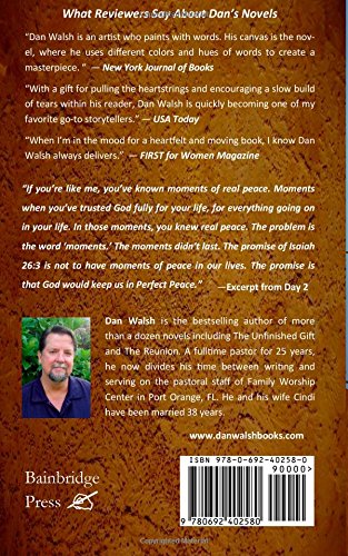 Dan Walsh, bestselling fiction author of novels like The Unfinished Gift and The Reunion, has penned his first non-fiction book. Perfect Peace is a 31-Day Devotional crafted from the pages of Dan's personal journal, written over the last several years. Here's an excerpt from Day 2: "If you're like me, you've known moments of real peace. Moments when you've trusted God fully for your life, for everything going on in your life. In those moments, you knew real peace. The problem is, the word 'moments.' The moments didn't last. The promise of Isaiah 26:3 is not to have moments of peace in our lives. The promise is that God would keep us in Perfect Peace." In Perfect Peace, Dan shares the Scriptural life-lessons he's learned during some of the more challenging times in his life, hoping to encourage other Christians wrestling with things like stress, worry or fear.