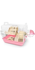 | Included Components | Clear Hamster Cage(peel off film first)、Villa-style Hideout、15cm Silent Running Wheel、Hamster Sand Bath Container、80ml Lick-activated Water Bottle & Food Bowl & Arch Bridge Toy |