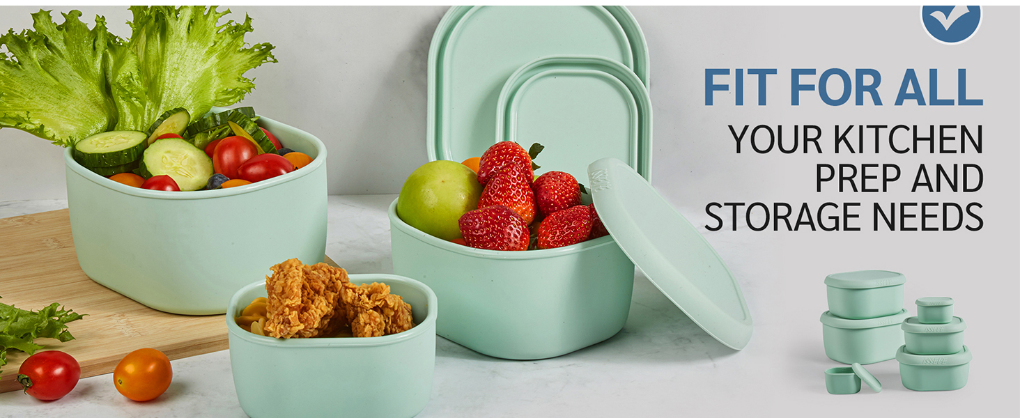 My work shifts are 12+ hrs long. So I have my main meals and snacks all at work. These silicone boxes allow me to meal prep, store in the fridge, pack my bag with a ice pack,heat in the microwave and eat right out of these containers. They are leak proof and nest together when stored.I got 3 sets of these.