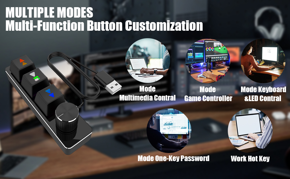 AZURAOKEY USB ni 3-Key Keypad Mecal Gang Keyboard Programng Mro, Mecal Mro Keyboard, Multimedia Controll Knob Port N/M/Android