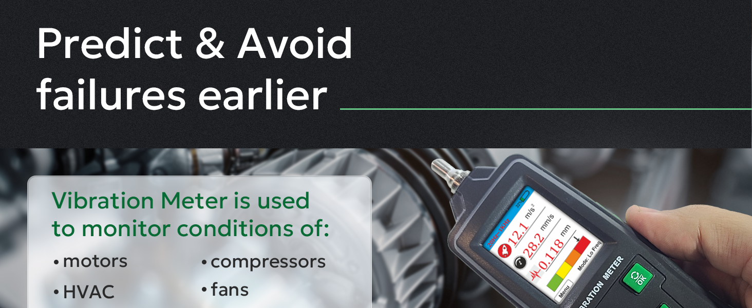 The VM-422 Digital Vibrometer is a compact, handheld vibration meter designed for professional-grade acceleration, velocity, and displacement measurement. Featuring a high-sensitivity piezoceramic sensor, it offers fast, accurate monitoring across a wide frequency range (0Hz–4kHz) with ±10% accuracy. Its user-friendly color LCD, data storage for 500 readings, and portable battery-powered design make it ideal for predictive maintenance in industrial settings like manufacturing, HVAC, and aviation.