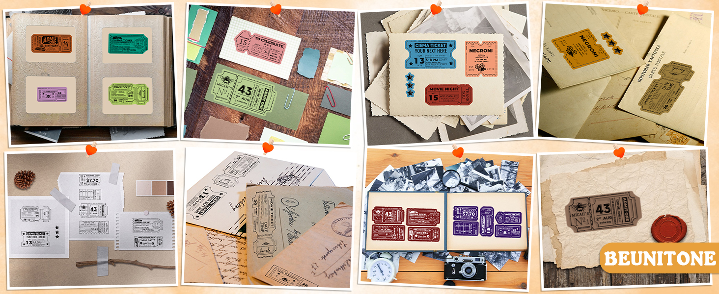 The 28pcs Vintage Ticket Stamp and Die Set includes 14 clear stamps and 14 die cuts featuring retro designs, perfect for a variety of DIY projects. Made from durable PVC and carbon steel, this set is easy to use and ideal for scrapbooking, card making, and more. It's a fantastic gift for anyone passionate about crafts.