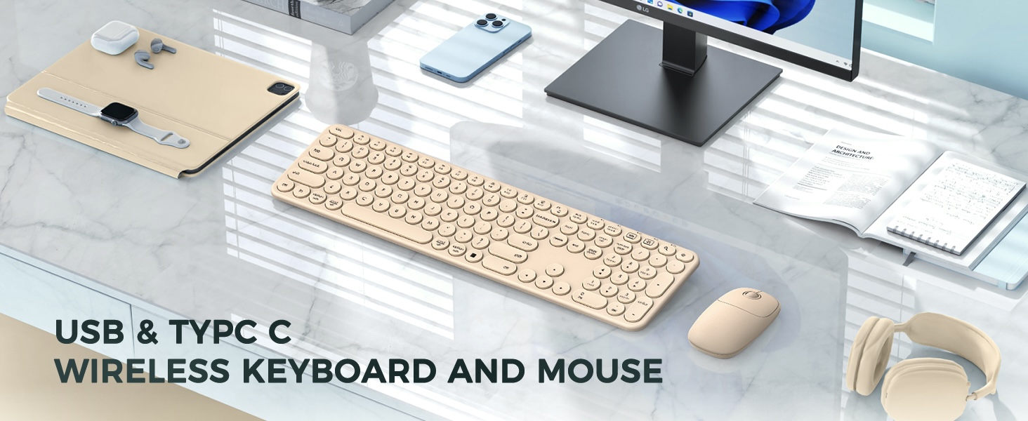 The seenda SK73-3 wireless keyboard and mouse combo features a single USB & Type-C receiver for effortless connectivity across Windows and Mac devices. Designed with ergonomic comfort and durability in mind, its rounded keys support up to 5 million presses, while the curved mouse promotes healthy posture. With low power consumption and up to 90 days standby time, this khaki-hued combo blends functionality and sleek design for the modern professional.