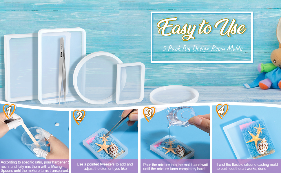 5 Pack Big Designs Resin Molds Include Round Square Rectangle | Desertcart Bolivia