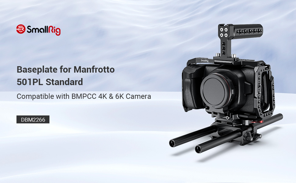 The SMALLRIG BMPCC Baseplate is a precision-engineered accessory designed for the Blackmagic Pocket Cinema Camera 4K & 6K. It features a quick release plate compatible with Manfrotto 501PL, a robust 15mm dual rod clamp, and versatile mounting options, making it an essential tool for professional filmmakers seeking efficiency and adaptability in their setups.