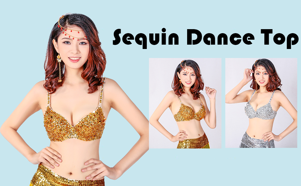AnlydiaWomen's Sparkle Glitter Bra Top Rave Dance Belly Dancing Crop Tops Costume Clubwear