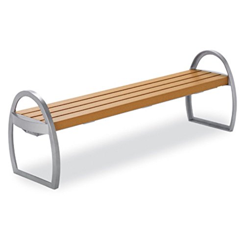 Maintenance-free recycled plastic lumber construction. Cedar colored recycled platic planks will not rot or warp. Contemporary pewter powdercoated frame design. Sturdy steel frame with cast iron ends. Protected by FusionGuard for extreme rust-resistance. Measures 72L x 24W x 34.5H inches.
