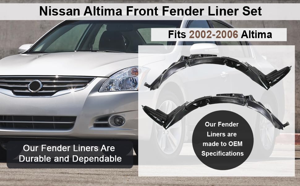 This Parts N Go front fender liner set offers a perfect OEM-spec replacement for both driver and passenger sides of 2002-2006 Nissan Altima models. Engineered for durability and direct fitment, it requires no modifications and comes backed by a one-year manufacturer warranty, ensuring reliable protection and hassle-free installation.