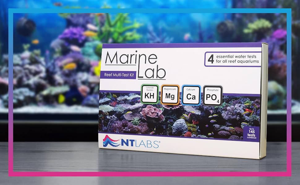 The NT Labs Marine Lab Reef Multi-Test Kit offers 155 highly accurate liquid drop tests for ammonia, nitrite, nitrate, and pH, designed specifically for marine aquariums. Featuring an integrated test tube rack and color-coded stickers, it ensures contamination-free, repeatable testing. Proudly made in the UK, this kit empowers reef enthusiasts to maintain optimal water conditions with ease and scientific precision.