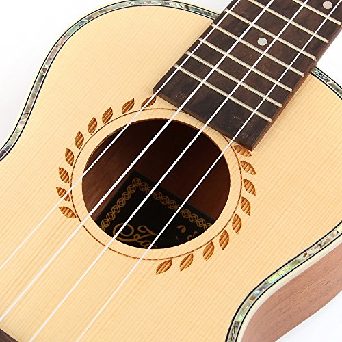 Brand: Jacques Model: SYUK-25-24 Body shape: Standard 24″ Neck: OKUME Fingerboard: Rosewood Nut&Saddle: Bone Top: Spruce wood Back &Side: Mahogany Rosette: Laser engraving Binding: With a black bag Bridge: Rosewood Headmachine: Diecast Strings: Imported Italian strings Finish: Open matt