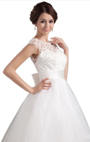 Category: Wedding Dress Brand: Biggoldapple Silhouette: A-Line/Princess Neckline: Bateau Hemline/Train:Tea-Length Sleeve Style:Sleeveless Embellishment: Lace/Sash/Bowknot Back Details: Backless Fully lined: Yes Built-In Bra: Yes Fabric: Tulle/Lace Shown Color:White Wedding Venues: Church/Hall Season: Spring/Summer/Fall/Winter Net Weight: 2.5KG Shipping Weight: 3.0KG