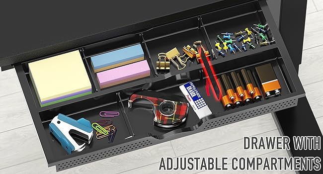 Heavy-gauge, very solid black-coated stamped, drilled and tapped steel construction was a breeze to assemble.Instructions were extremely clear. Sleek, attractive minimalist design. All components arrive in excellent condition, and fit each other exactly as designed.NOTE ON ASSEMBLY: Instructions are very clear. READ them, too; don't just look at the pictures.At the bottom of every page, the assembly pamphlet clearly advises to WAIT to tighten ALL screws until ALL screws have been threaded into place. This is REALLY IMPORTANT: do this for a straight, rigid assembly. It's designed this way so that final tightening provides a uniform tension as things get tightened. Got that right the first time around: my desk is flat on its broad feet and dead level.NOTE ON USE WITH KEYBOARD TRAYS: This is on me: I should have waited to order a keyboard tray until I had the desk at hand; I ordered the familiar sturdy Vivo, https://www.amazon.com/gp/product/B01H7UGD7Y/ref=ppx_yo_dt_b_asin_title_o01_s00?ie=UTF8&psc=1, and found that the desk's sturdy cross braces do not have sufficient space for this model's bracket.There is 11" of free space under the desktop from front edge to the front cross brace; the tray model I'd ordered requires 18". Again: my problem, but good to know, in retrospect! This keyboard tray is probably unsuited for most electric desks.SAFETY NOTE (unrelated to quality of product) The only snag was a literal one encountered during unpacking: the staple on the end of the red ribbon that secured the plastic bag containing the instruction sheet to the shipping container. The red ribbon extended outside the box (where it was firmly taped to the outside of the package) so it would be clearly visible; I did not anticipate that as I grabbed the ribbon and yanked it, there might be a -staple- securing the end of the ribbon inside the box to the instructions baggie. Ouch!. (This is in no way a problem with the product.)COMMENTS: Great product, reasonable price, fine value.- Seller might consider including front-to-back mounting area underneath for accessories is 11" max; this is not a typical spec, and may be typical of adjustable-height desks. Velcro wire management strips were included; obviously, I have a couple more to deploy.- Wire basket that holds power supply and excess cable behind the cross-braces seems to have been folded the wrong way around to fit as indicated in the instructions. the tabs on the brace to hold it are a nice, snug fit for the wire gauge, but the transverse reinforcing wires of the basket are on the outside of the basket, so that the basket cannot be inserted into the tabs unless it's oriented opposite the view in the instructions.Definitely would buy again, but almost certainly will not need to do that: solid, attractive and comfortable product.