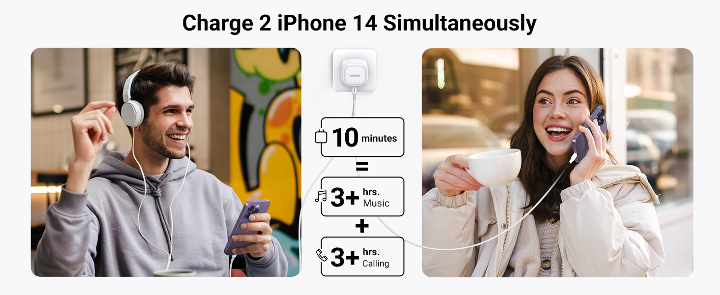 The UGREEN 2-Port PD 40W Fast USB-C Charger delivers rapid, simultaneous charging for two devices with universal compatibility across major brands. Its foldable, compact design makes it an essential travel accessory, while built-in safety features protect your devices during every charge.