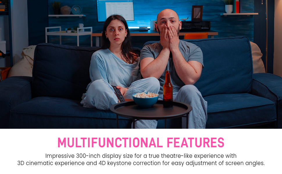 | Special Features | 300" Giant Screen., Buit-in HiFi Speakers., Compatible with TV Stick, Phone, PS5, Laptop., Equipped 5G+2.4G WiFi & Bluetooth., Movie Outdoor Projector Suitable for Indoor/Outdoor entertainment., Native Full HD 1080P projector 4K Support., Professional Customer Service Support., Supports Table, Tripod, Ceiling Installation. |