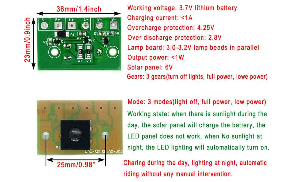 The 2PCS 1A Solar Lamp Controller is a cutting-edge solar power charging module designed specifically for 3.7V lithium batteries. It features a robust control circuit board that ensures automatic illumination at night, with built-in over-charge and over-discharge protection. The three-level switch allows users to easily adjust power settings, making it an ideal choice for eco-conscious DIY projects in gardens and lawns.