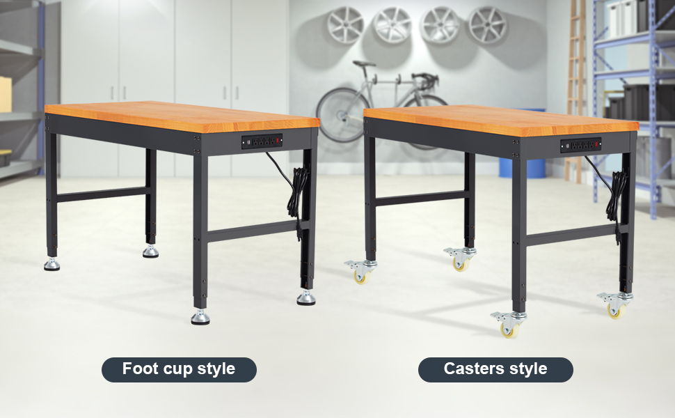 The HABUTWAY Height Adjustable Workbench combines a durable oak wood tabletop with a heavy-duty steel frame supporting up to 2000 lbs. Featuring four locking caster wheels for easy mobility and three adjustable height settings from 31.8" to 40.6", this 48" x 24" workstation is perfect for professional-grade garage, office, or craft use. Designed for quick assembly and versatile applications, it’s the ultimate upgrade for any serious workspace.
