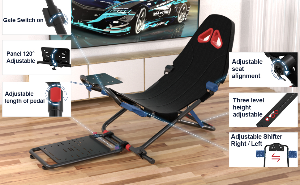 I am seriously impressed with this seat. I wanted something that would easily fold away, so as not take up too much space when not in use and expected to have to compromise on comfort and robustness. This is very comfortable and so far it seems fairly robust (it is fairly heavy). It folds away really quickly, with the Logitech G920 steering wheel and pedals still attached. The ratchet mechanism to adjust the seat height works really well, and the seat back is adjustable.