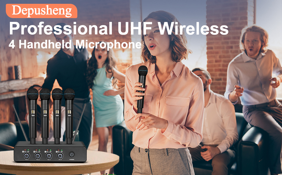 The Depusheng R5 Wireless Microphone system includes 4 professional UHF cordless handheld mics with individual volume control, a slim receiver with internal antenna, and advanced frequency synthesis technology for stable, interference-free audio up to 164 feet. Ideal for karaoke, meetings, weddings, and DJ events, it delivers clear, noise-free sound with easy plug-and-play setup.
