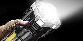 The SHREE HANS CREATION Rechargeable Flashlight is a super bright, 4-mode LED handheld light designed for outdoor enthusiasts and emergency preparedness. Featuring USB rechargeability with a battery power display and a waterproof build, it offers reliable illumination in all weather conditions with ergonomic portability.