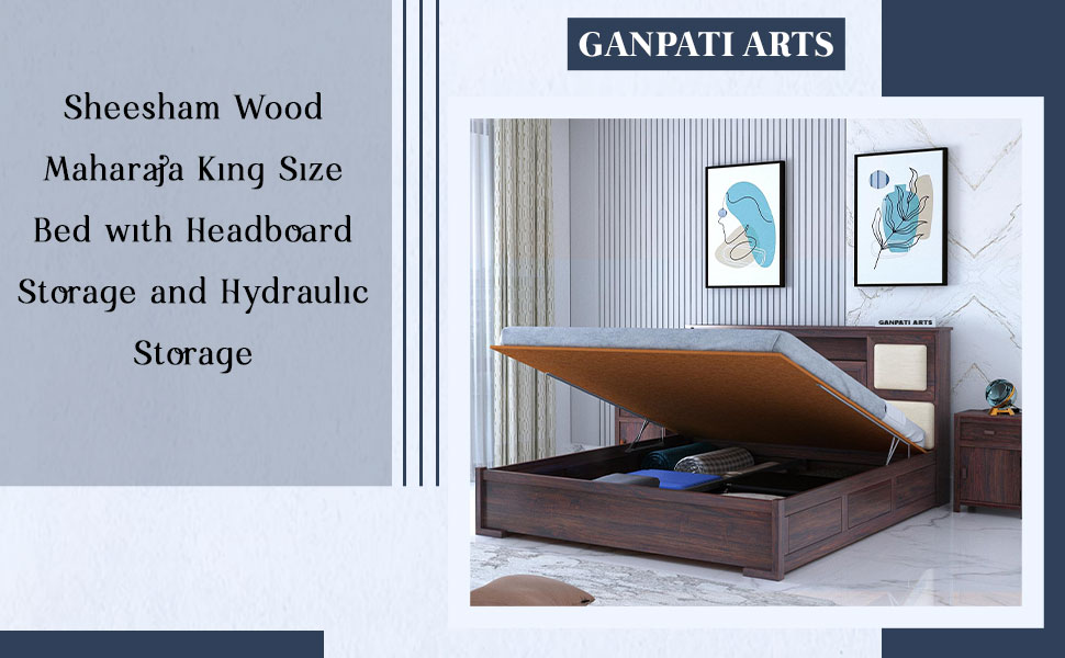 The Ganpati Arts Solid Sheesham Wood Maharaja King Size Bed combines robust Indian Sheesham wood with a sleek walnut finish, offering a spacious 218x188 cm frame designed for king-size mattresses. Featuring a plush cushioned headboard and innovative hydraulic storage, this contemporary bed blends luxury, functionality, and timeless style—perfect for the modern professional seeking both comfort and smart space solutions.