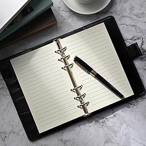 The A6 Refillable Paper by Tofun offers 80 sheets of high-quality, 100GSM lined paper, designed to fit perfectly into any standard 6-ring A6 binder. With a size of 10.5 x 17cm and a cream color that enhances readability, this refill paper is perfect for planners, journals, and notebooks, ensuring a smooth writing experience without any bleeding.