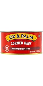 Ox & Palm Corned Beef Original Chunky Style offers premium grass-fed Australian Angus beef in a chunkier, juicier format. Free from hormones, antibiotics, and artificial additives, it’s HACCP, USDA, and SQF certified, ensuring top-tier quality and safety. Perfect for sandwiches, hash, or any dish craving rich, natural flavor.