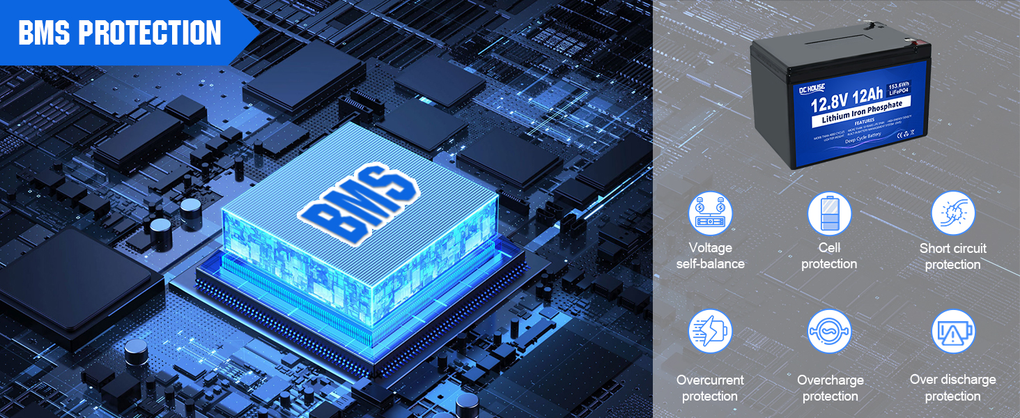 - [15A BMS Protection] DCHOUSE LiFePO4 Battery has built-in 15A BMS protection, which can better protect to prevent over-charging, over-discharging, over-current, and short-circuit than the traditional 10A BMS protection of other batteries. Charging Operating Temperature Charging Operating Temperature: Charging: 0°C - 50°C; Discharging: -20°C - 55°C.