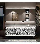 The ZGNBSD Floating Bathroom Vanity is a 60-inch wall-mounted unit crafted from multi-layer solid wood, featuring a cutting-edge smart defogging medicine cabinet and an integrated artificial stone sink. Designed for modern living, it offers spacious storage with two drawers and an upper cabinet, combining durability, moisture resistance, and sleek minimalist aesthetics to transform your bathroom into a clutter-free, stylish retreat.